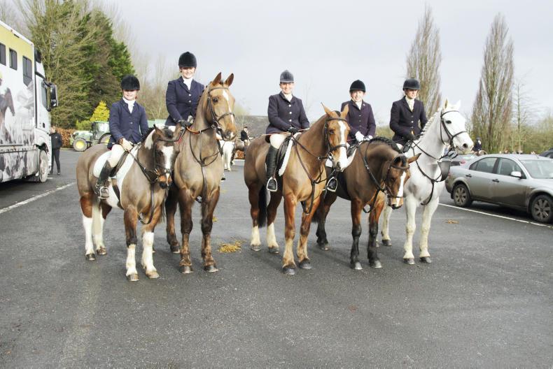 Tipperary Foxhound hunt ladies (l-r) sisters Rosie-Mae and Mimi O'Grady, Ber Bourke, Rosanne De Vere Hunt and Jacqui Freyne (Photo: Catherine Power)