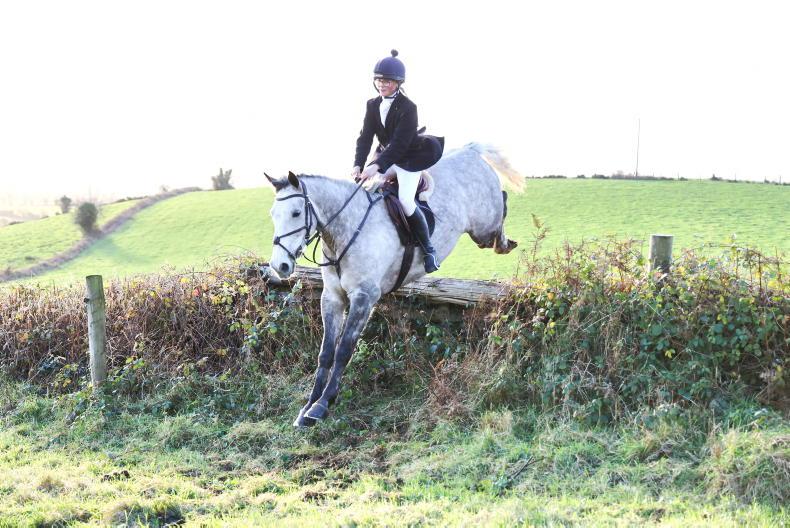 Logan Woods clears the walls on his lovely coloured cob out with the East Clare Harriers at Scariff \ Catherine Power