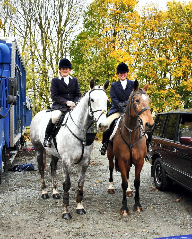 Former jockey Linzi Sullivan and Annie McGinn hunting with the Louth Foxhounds at Grangebellew, Co Louth \ Noel Mullins