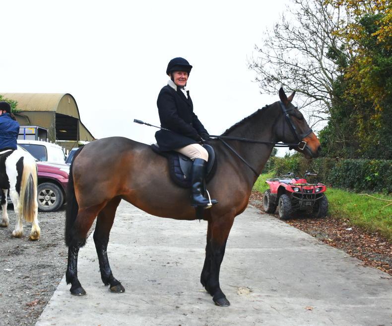 Louth hunt chair Sandra Cumiskey hunting with the Louth Foxhounds at Grangebellew, Co Louth \ Noel Mullins