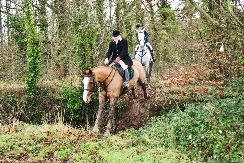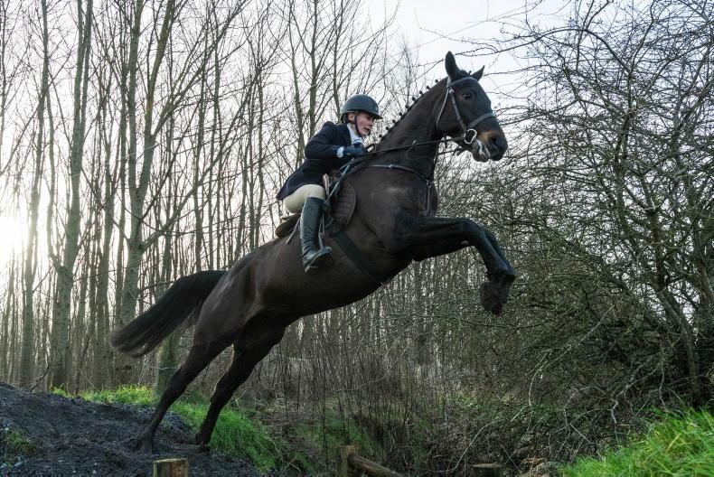 John Hourigan (Scarteen hunt chairman) on his faithful horse takes the banks in his stride \ Catherine Power