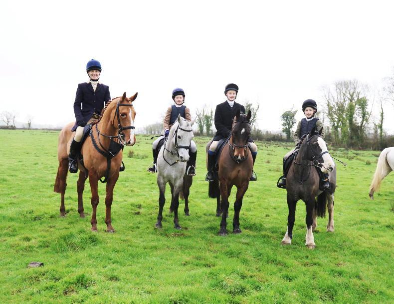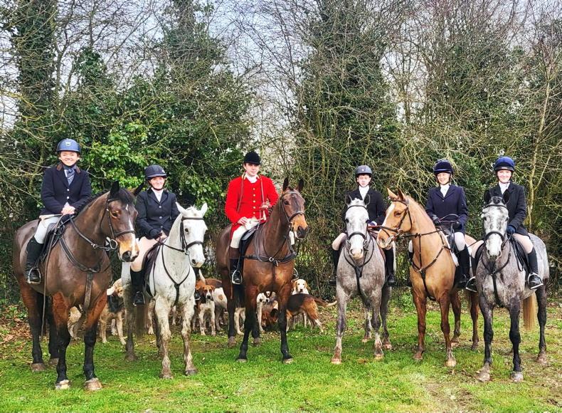 The East Galway Hunt had a Childrens meet on December 28th with great crowds following and appointed some of our junior members as hunt staff for the day. Left to right, whipper-in Katie Gibbons, field master Aleesha Doerflinger, Huntsman Eoghan McCabe, Deputy Huntsman Oisin McDonagh, whipper-in Alex Kenny, whipper-in Jane Duffy