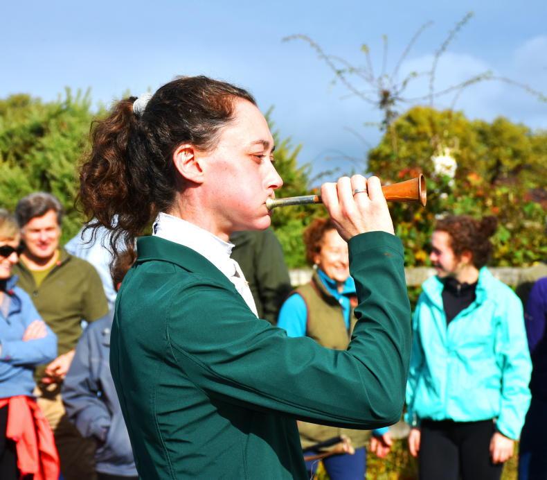 Joint mater and huntsman of the Mr Kerrs Beagles, Grace Kerr, at the meet from Wilsons in Blessington \ Noel Mullins
