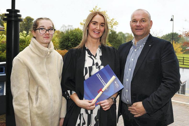 Karen White (Tempo) celebrated the completion of a Level 3 Certificate in the Principles of Horse Care and Management with husband Rodney and daughter Mia, when they attended the Further Education Awards Ceremony at CAFRE Enniskillen Campus \ CAFRE