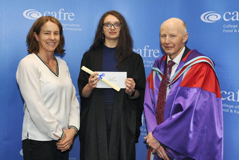 Michelle-Claudia Rovinaru from Virginia, Co Cavan, received the Department of Agriculture, Environment and Rural Affairs Prize, recognising her as the top student on the Level 2 Technical Certificate in Equine Care. She was congratulated by Grainne Flavin, the Guest Speaker, and Dr. Eric Long, (Head of Education, CAFRE) during the awards ceremony held at the CAFRE Enniskillen Campus \ CAFRE