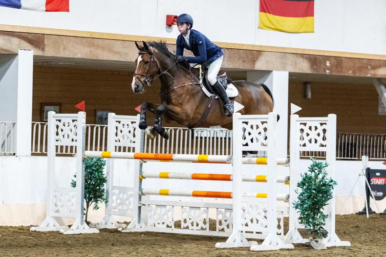 Harrison Blair and L'Esprit Hero Z took the top spot in the Bluegrass-sponsored 1.35m class at the Portmore Autumn Championships \ Sporting Images NI