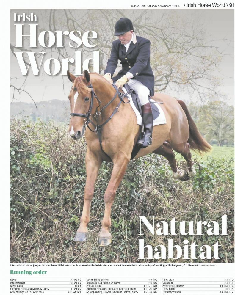 Plus, to prove he can still walk the talk “Irish show jumping High Performance manager Michael Blake enjoys a day’s hunting with the East Clare Harriers at Scarteen. Blake had plenty to celebrate last week, as Ireland was named the most successful Nations Cup team of 2024 by Swiss newspaper Pferdewoche” (21st).
