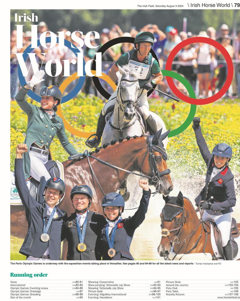 EVENTING, hunting and show jumping dominated the front pages of the Irish Horse World throughout 2024. There was no hunting – as an equestrian sport – in Paris, so show jumping and eventing, along with dressage, featured in Olympic Games collages that fronted the issues of June 15th, August 3rd and 10th.