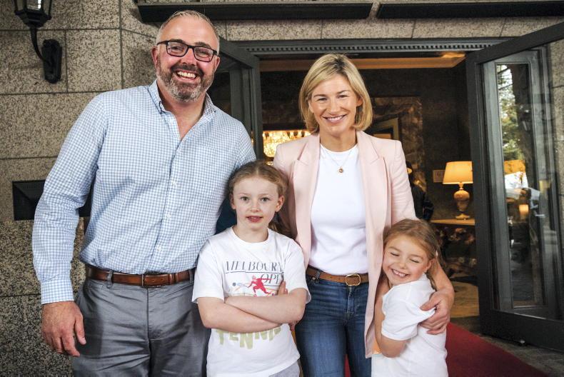 Nina Carberry and Ted Walsh with their children Rosie and Hollie Breakfast with the stars of the Irish Aga Khan team 2025 at the intercontinental Hotel Dublin \ Claire Nash