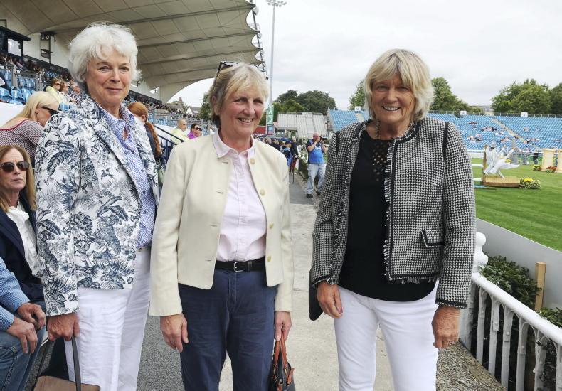 Jackie Mullins, Emma Clarke and Jessica Harrington pictured at the Main arena \ Lorraine O’Sullivan