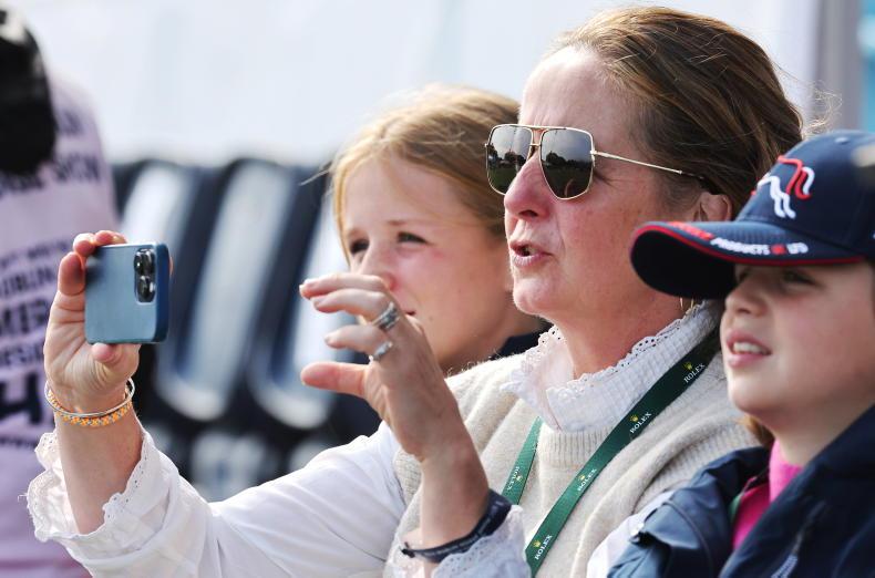 Broadcaster Alice Plunkett watches the four-year-olf event horse class which was judged by her husband, William Fox-Pitt \ Lorraine O’Sullivan