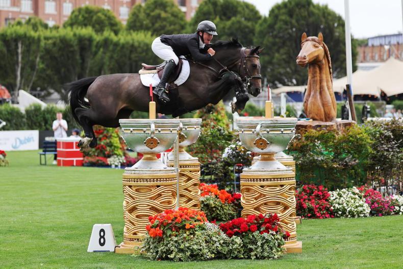 Mikey Pender and HHS Fortune won the Minerva Stakes on the opening day of the Dublin Horse Show \ Laurence Dunne Jumpinaction.net
