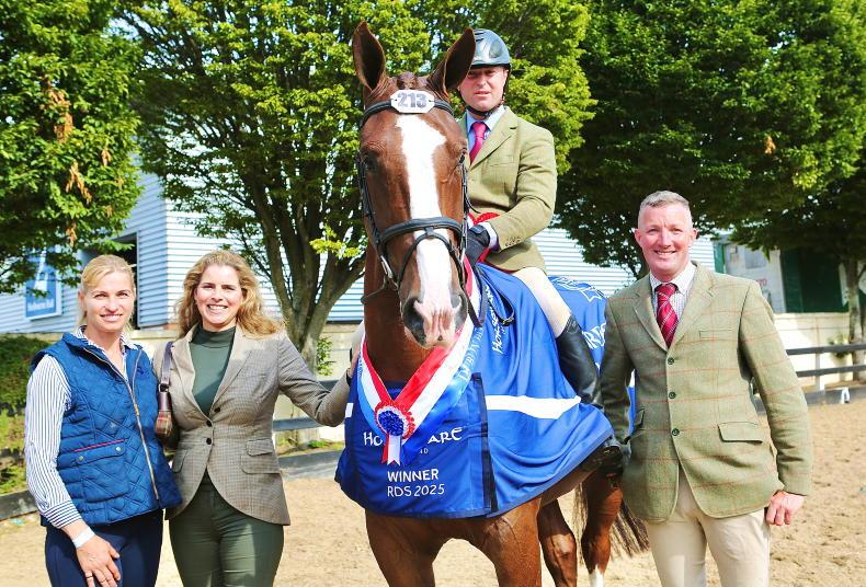 Brigitte Vonk from the Netherlands with her Dublin Horse Show ‘souvenir’: Two Mile Nigel (Two Mile Vinny - Two Mile Gretta. Breeder: Jerry Mahon), winner of the four and five-year-old Irish Draught performance final at Dublin. ’Nigel’ is pictured with Michaela Molloy (left), Brigitte, Diarmuid Ryan and Dermot Molloy \ Susan Finnerty