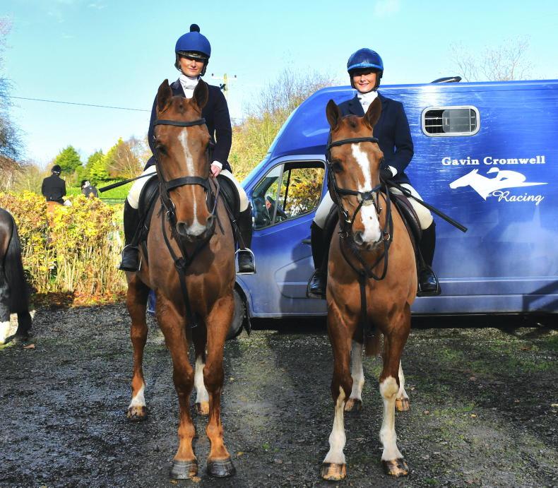 Twins and amateur jockeys Caragh and Aoibhe Monaghan out with the Fingal Harriers from Mary Beggan’s farm \ Noel Mullins