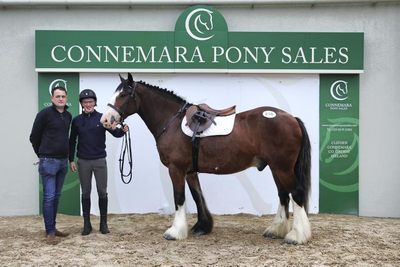 Lot 236, Clonfad Alberto making the second highest price on Friday €10,600 with Ronan Finn and Mark Whelan (seller) at the Connemara Pony Sales \ Between The Ears Equine Videos