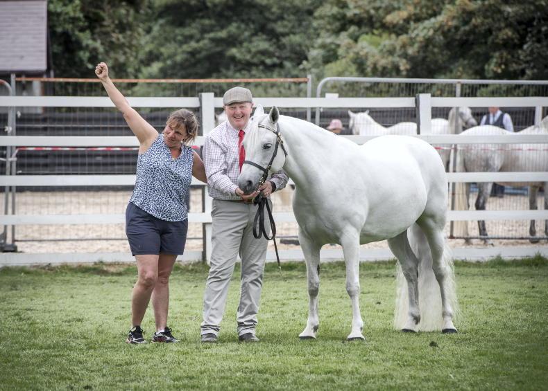Jennifer and Mike Keane celebrate their win with Cregduff Emily in the 6-9 year old mare class in Clifden last Wednesday \ Rynes Walker