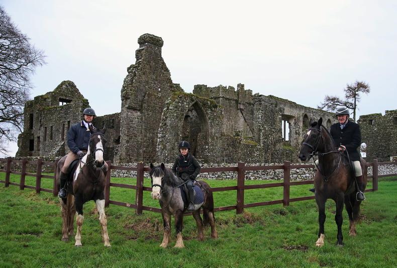 Three generations: Davey, Frankie and Christy Reynolds at the Tara Harriers Children's hunt held in Bective on January 10th \ ARC Photography