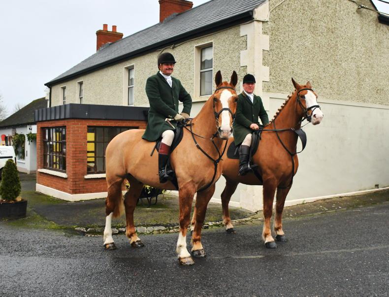 Joint master Martin Farrell and field master Ken Farrelly at the Ballymacad Foxhounds meet at Mountnugent \ Noel Mullins