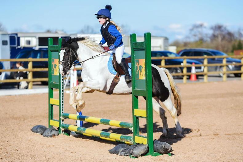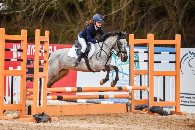 Champion IPS overall working hunter pony Claireville Codiac and Sophie Cusack (right), winners of the Balmoral 15cm working hunter qualifier at Duffys on Sunday. They also qualified for the Under 16 workers in Balmoral. Reserve champion was Nicole O’Shaughnessy with her new pony Glandrine Pied Piper, who won the working and flat starter stakes \ Joe Burke