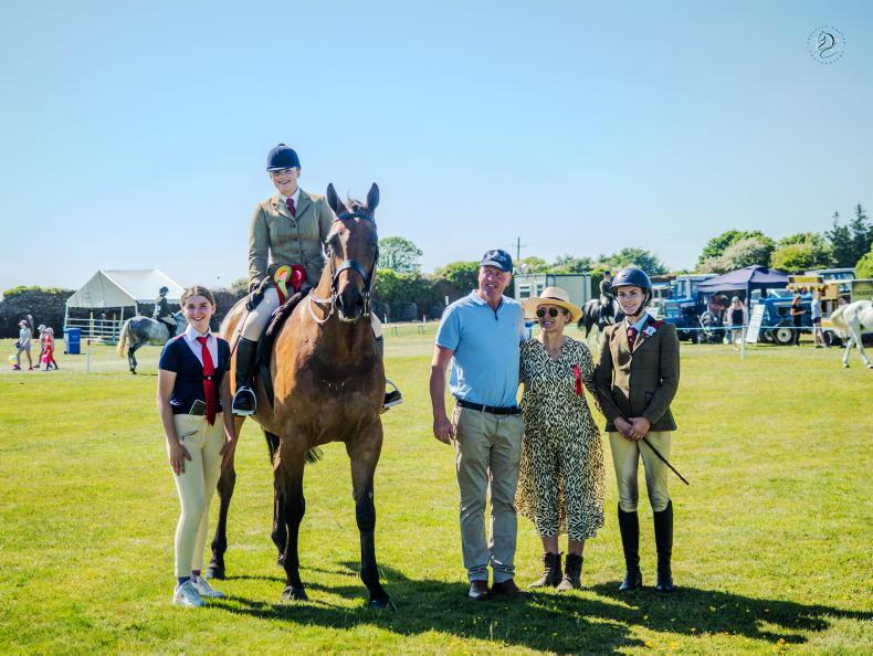 Deirdre Burchill and her Champion Hunter Ballard Bridgeboy joined by her father John and sister Emma and judges Nina Doyle and Leah Kent at Bandon Show \ Daria Pigla