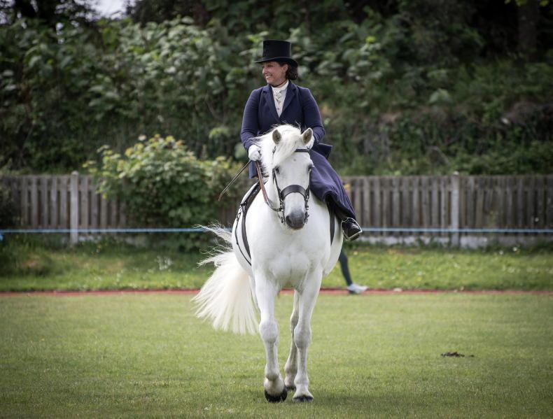 Lankill Lad and Lauren Kerins in the side saddle class at the Ballyconneely Performance Show \ Rynes Walker