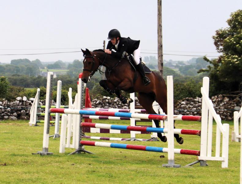 Shane Goggins and Sfg Guinness, joint first with Sven Hadley and Brandonview First Edition in the Horse Puissance which went to a height of 1.80m at Headford Gymkhana \ Maura Morrin