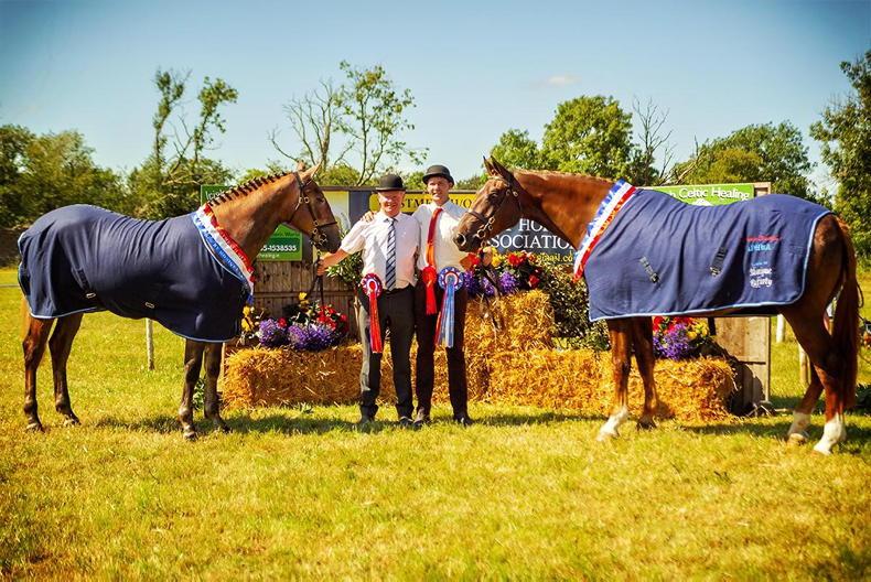 Maria McNamara and Shanbally Pippalo Pat are the winners of the All Ireland Ridden Hunter Championship, the Ridden Draught Class and the Ridden Horse Champion at Ardrahan Show last Saturday \ Rynes Walker