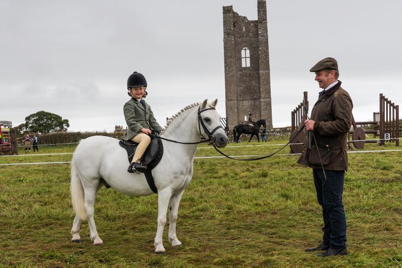 Pat Dillon proudly assisting daughter Harriet on her pony Cookie at The Royal Meath show in Trim \ Mark Wiseman
