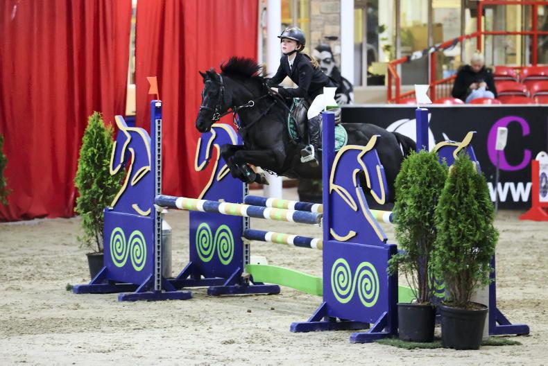 Julia Sheehan and Heartbreaker Charlie, winner of the 128 1m at Cavan October Halloween Pony Show \ Laurence Dunne jumpinaction.net