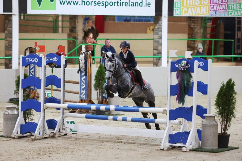 Saoirse O'Neill and Corona Boy, winners of the 148-1.25m Ballypatrick Stables Grand Prix at Cavan October Halloween Pony Show \ Laurence Dunne jumpinaction.net