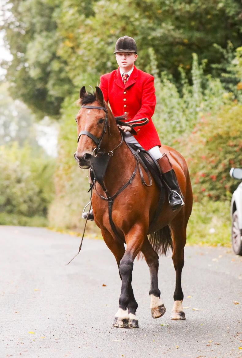 Gearoid Moynihan, brother of huntsman Padhraic Moynihan, has taken up the role as whipper-in to the Kildare Foxhounds this season. He was pictured autumn hunting outside Dunlavin last weekend