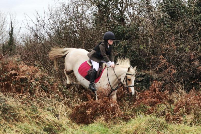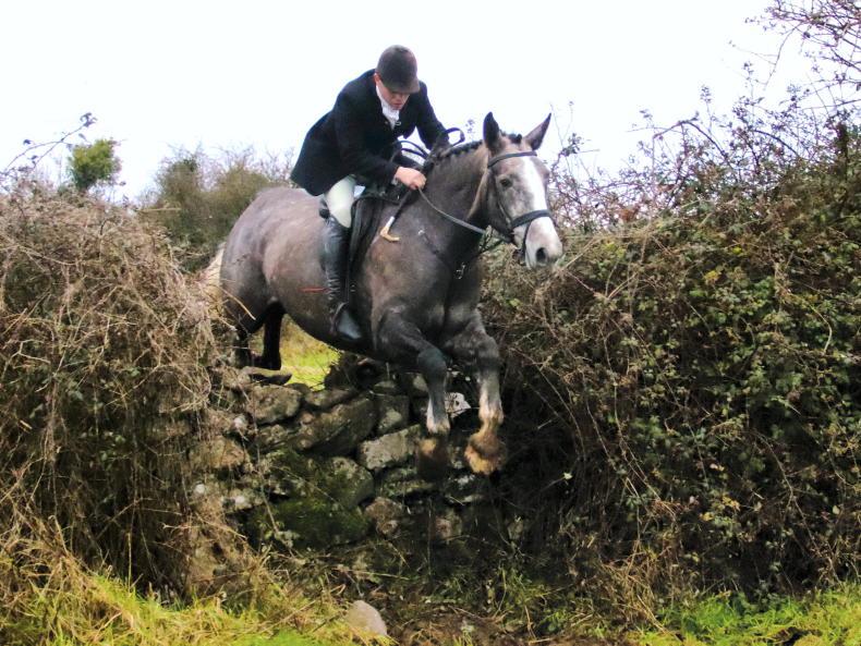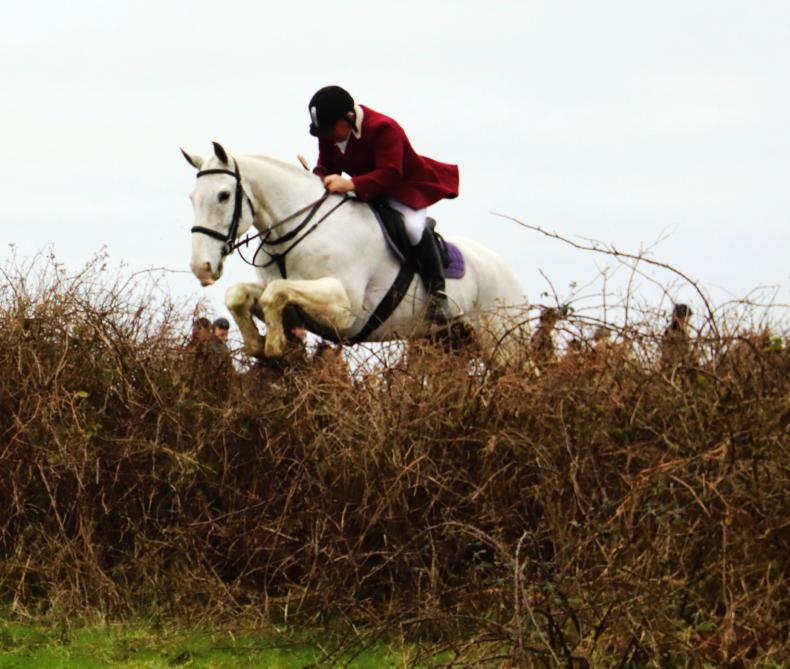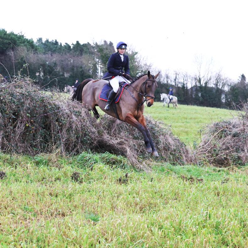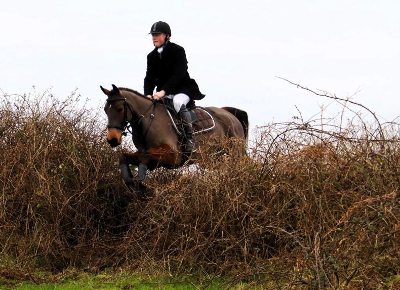 Charlie O’Shea takes the hedge in her stride with the North Tipperary Foxhounds \ Catherine Power