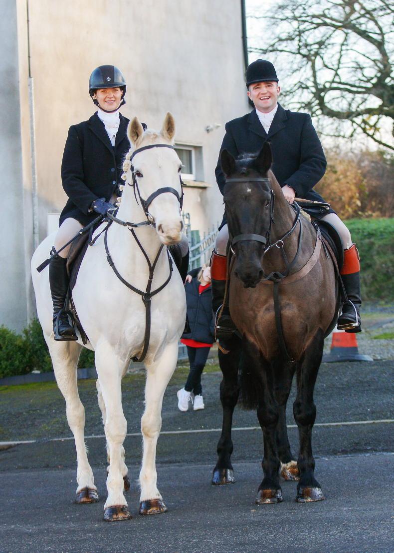 Susie Shekleton and Tadhg Dooley at the meet of the Kildare Foxhounds from Dunlavin on St Stephen's Day \ Siobhan Emglish