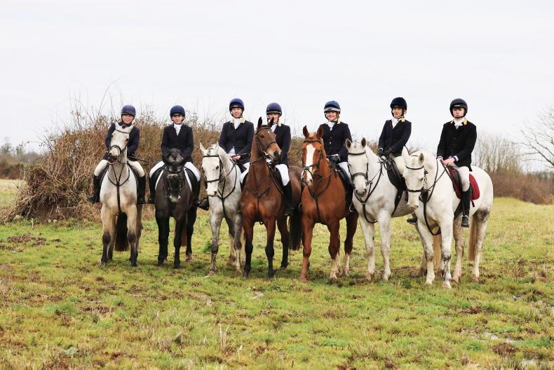 Elana Ni Shithigh, Emily Ryan, Ava Gainor, Lauren Spain, Clodagh Spain , Rachel Donovan (Iris hFarmers Journal) and Charlie Cairns out with the North Tipperary Foxhounds \ Catherine Power