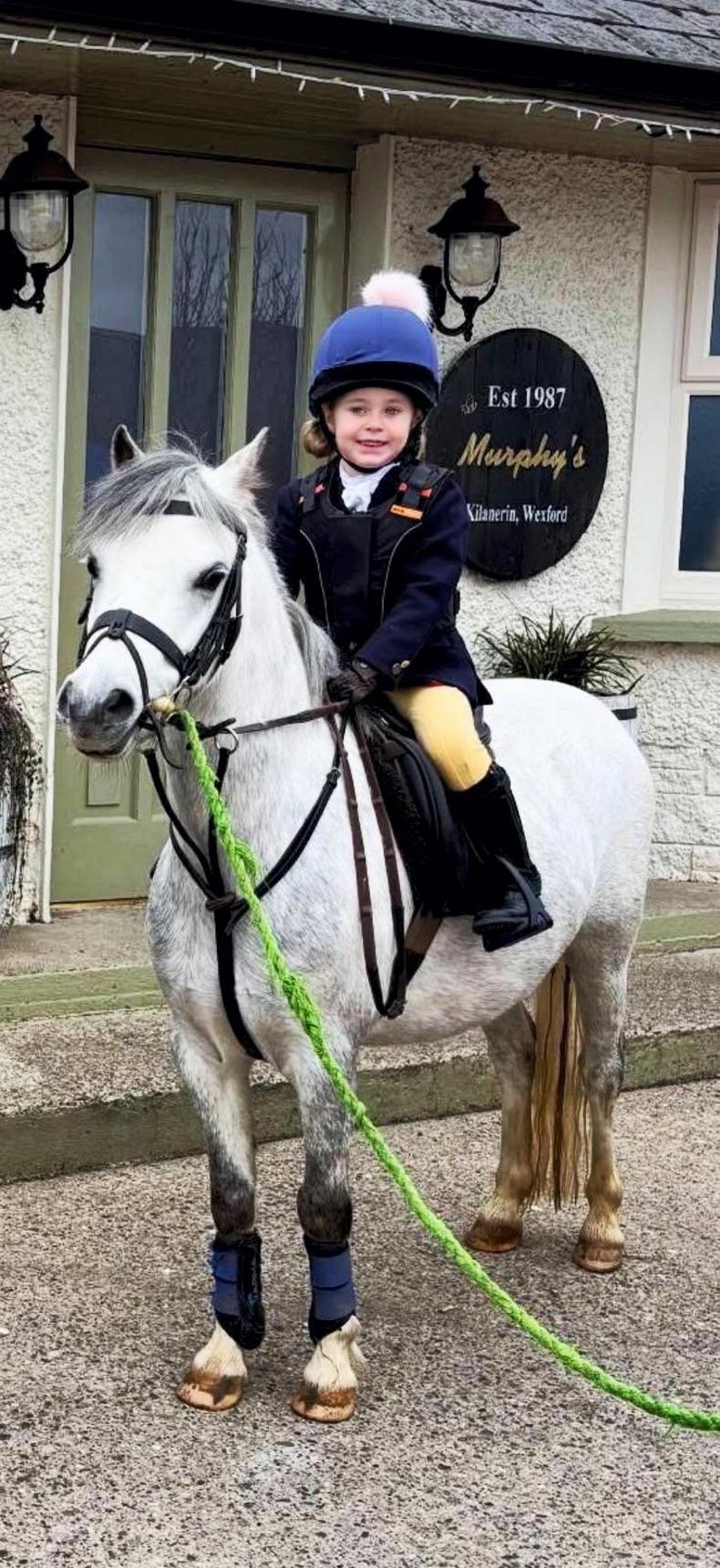 Róisín O'Connor, five, riding the five-year-old Pip at the Wicklow Foxhounds' children's meet at Kilanerin Village on Sunday, December 28th