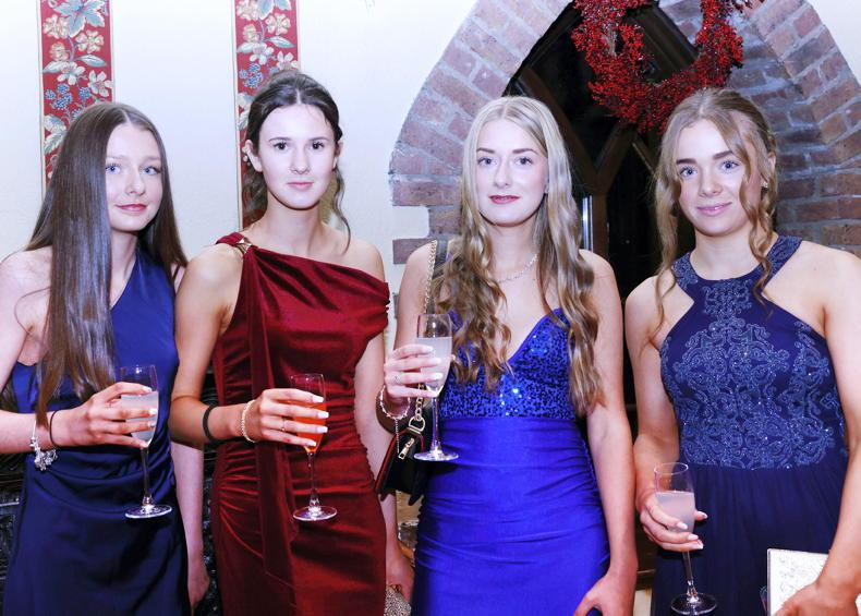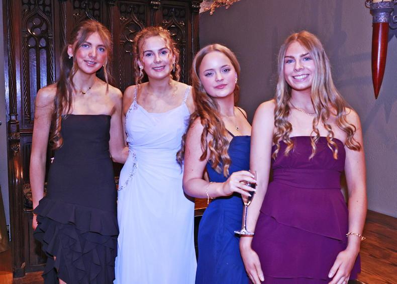 Island Hunt branch members Sophie Byrne, Ella Warren Abbie Hill and Rosie Bailey at the Pony Club Ball in Barberstown Castle \ Bridie Maughan