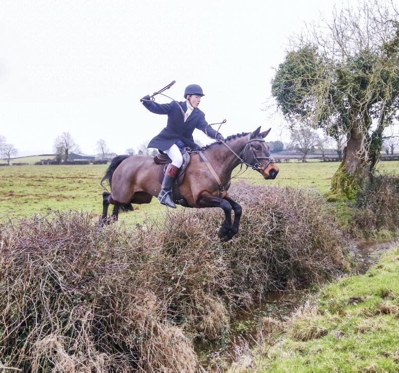 Michael Larkin shows how its done over a big hedge hunting with the Ormond Foxhounds \ Catherine Power