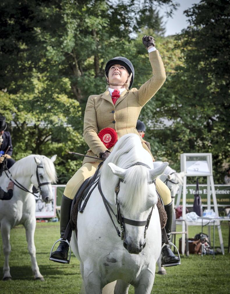 Lackaghbeg Augustus Star and Leonie O’Gorman after their win in the ladies side-saddle at the Dublin Horse Show \ Susan Finnerty