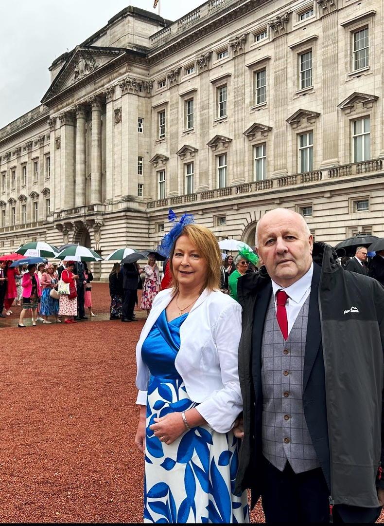 Paul Johnston and his wife Monica, pictured at Buckingham Palace last May, after she received her BEM award