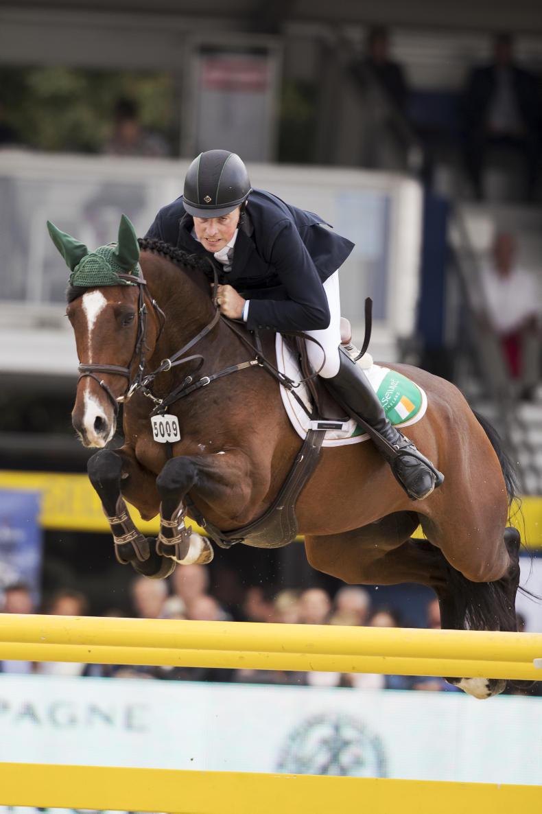 Ger O'Neill and Killossery Kaiden winning the six-year-old gold medal at the FEI World Breeding Jumping Championships for Young horses in 2016. Photo Hippo Foto Dirk Careman