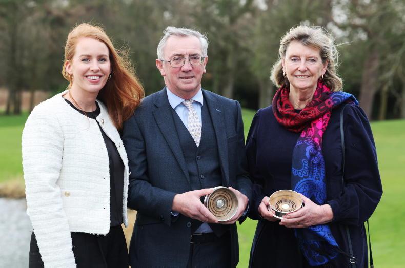 Judith Faherty with Michael Blake and Sally Parkyn who were recognised with Special Contribution Awards at the Irish Horse world Awards 2025 \ Lorraine O’Sullivan