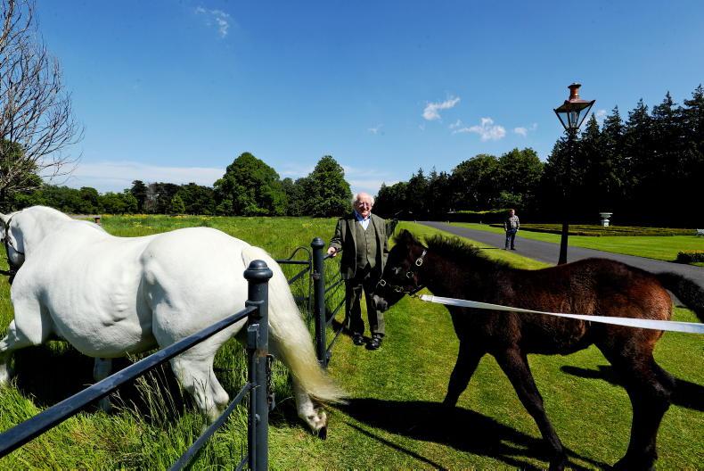 On Monday, it was President Michael D. Higgins who was full of joy when welcoming Gray Lass or ‘Snowy’, an eight-year-old mare by Lehid Canal Prince, and her foal Peaceful Aimhirgin (by Blakehill Ballylee Storm), named by the President after Aimhirgin Gluingheal mac Mileadh, the Milesian warrior-poet of Irish mythology who is said to have defeated the Tuatha Dé Danann.