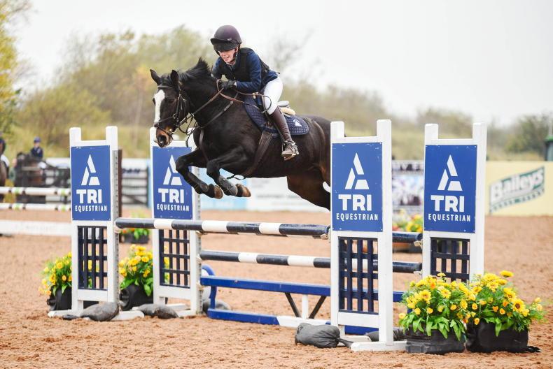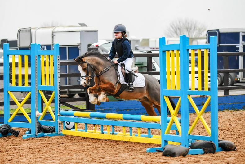 Sophie Wallace on her pony Miss Susie who won the Meadows Equestrian Centre 128 70cms league and also won on the day, pictured with her proud mother Laura
