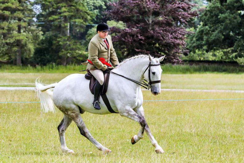 The Ridden Irish Draught four- and five-year-old class was won by Judith Long’s Rebel Vision, a five-year-old grey gelding by Darragh Moylough Vision, out of Bailies Rebel by Huntingfield Rebel, bred by Sheila McElwine.