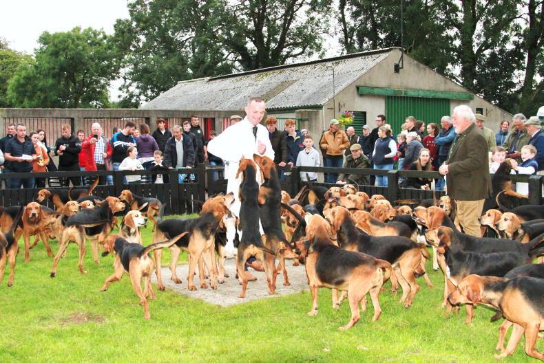 Unfavourable weather proved to be no deterrent to the huge crowd who turned up for the occasion. Judges Kate Jarvey and David Trant MH (North Kerry Harriers) were given the task of picking champions from the 12 couple on show. The kennels were in pristine condition, having been given a serious face-lift over the summer by new Scarteen huntsman Jamie Cross, ably assisted by KH Paul Collins and Mike McCarthy and not forgetting Jake Murphy MFH, who have done trojan work coming into the autumn.
