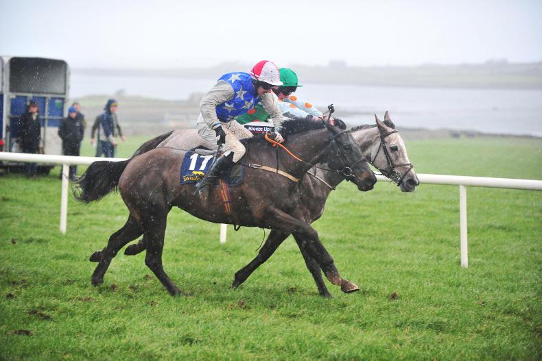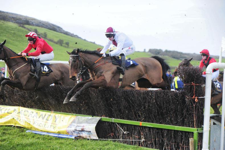 THE John Nallen-owned/trained Minella Escape (2/1 - 3/1f) looked a horse of some potential when claiming the five-year-old geldings’ maiden on a tremendous afternoon of action at the Co Clare-hunt meeting in picturesque Bellharbour last Sunday. Forming the initial leg of a double for Johnny Barry, the Beat Hollow gelding took a forward position early and jumping impeccably, improved to head his front-running stable-mate Minella Away after the second last. From here, the imposing bay was always in control as he readily powered clear to dismiss the Warren Ewing-handled Here We Have It by a cosy six-lengths.