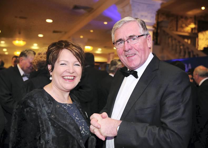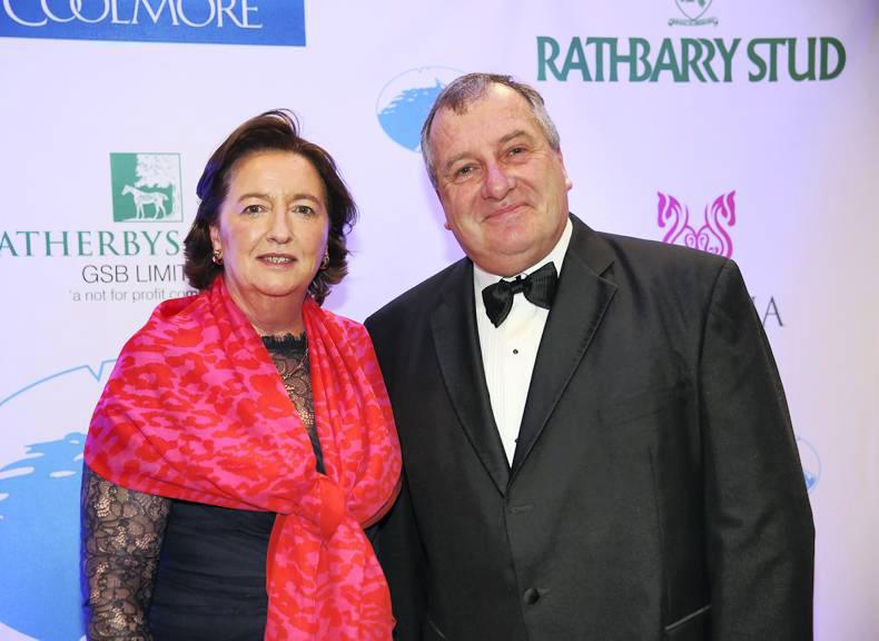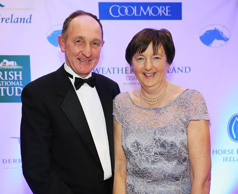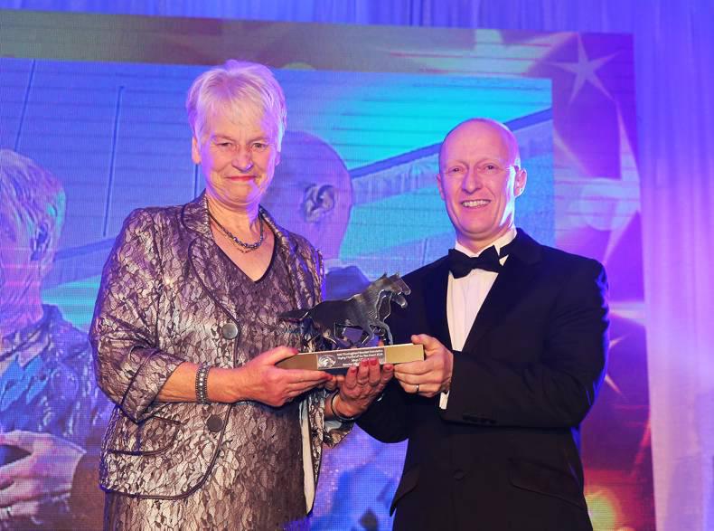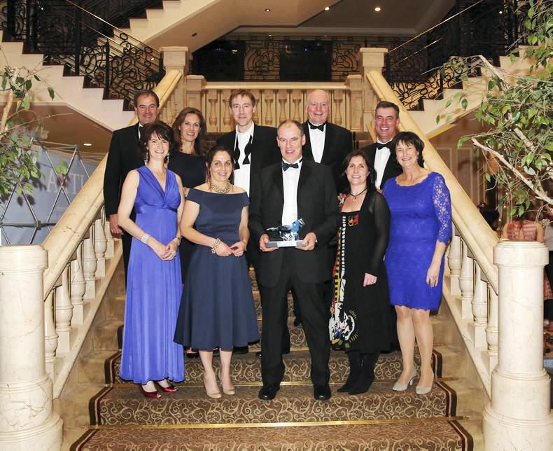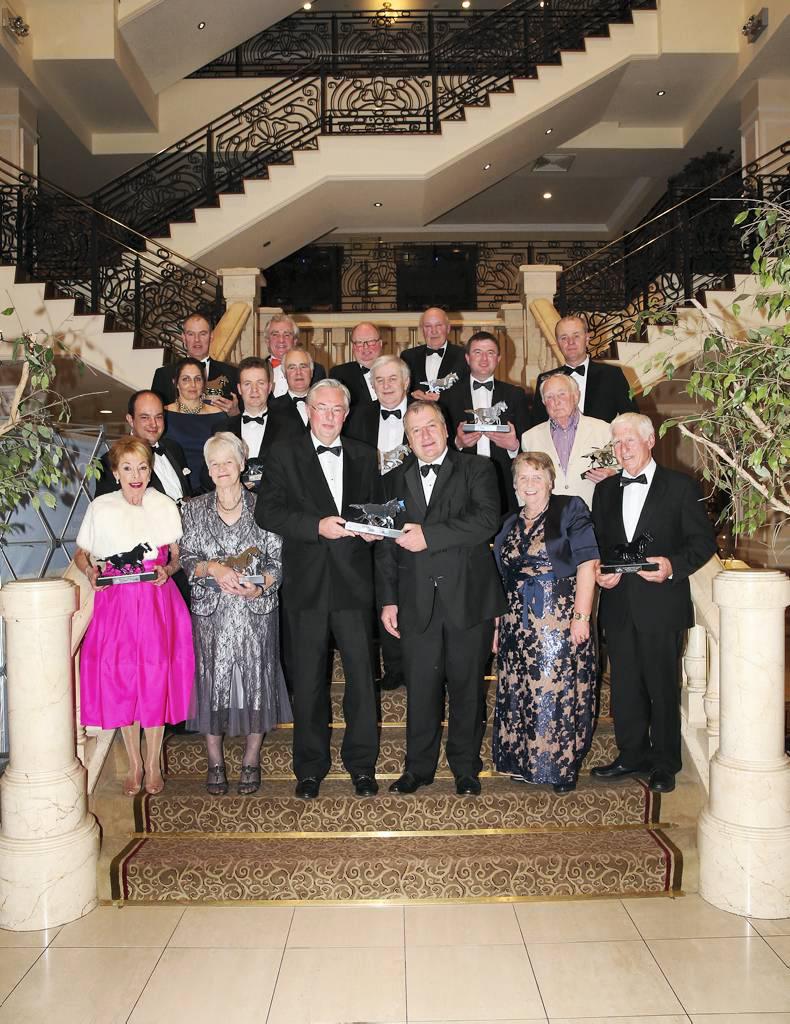 AWARD WINNERS, FRONT ROW: SABENA POWER, SPRINTER; ELEANOR HADDEN, STAYING HURDLER, STEPHEN COLLINS, HALLOF FAME, ON BEHALF OF SHEIKH HAMDAN AL MAKTOUM, DEREK ICETON, CHAIRMAN ITBA; META AND KEVIN CULLEN, SMALL BREEDER. L-R, BEHIND THESE: FREDDIE POWELL FOR MALCOM PARRISH, 3-Y-O COLT; MARIE AND PAUL MCCARTAN, 2-Y-O FILLY; EDMOND COLEMAN, CHASER; GERARD MCGRATH, HURDLER; JOHN O'CONNOR, 2-Y-O COLT; CHRISTY GRASSICK, 2-Y-O FILLY; PADDY DOYLE, NOVICE CHASER; RORY MAHON, SPECIAL RECOGNITION; NIALL RY