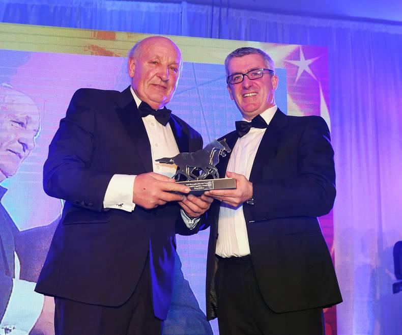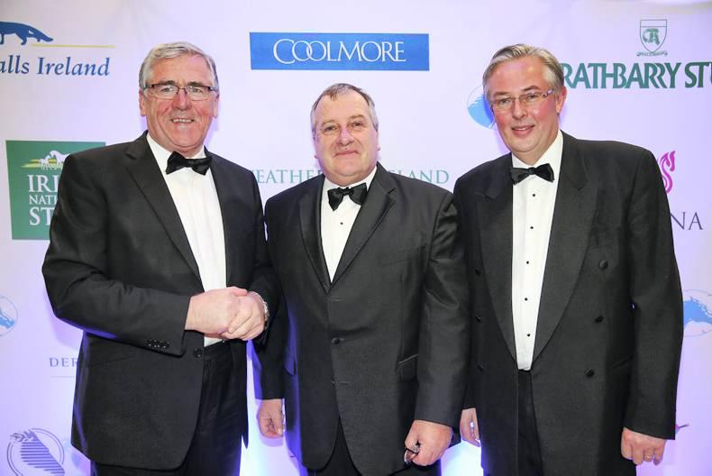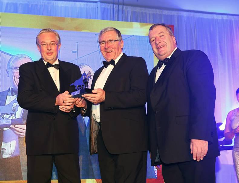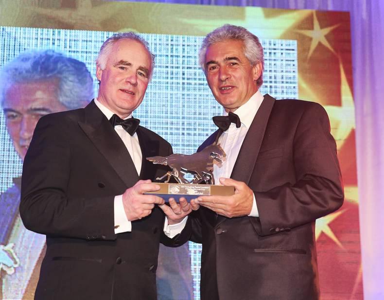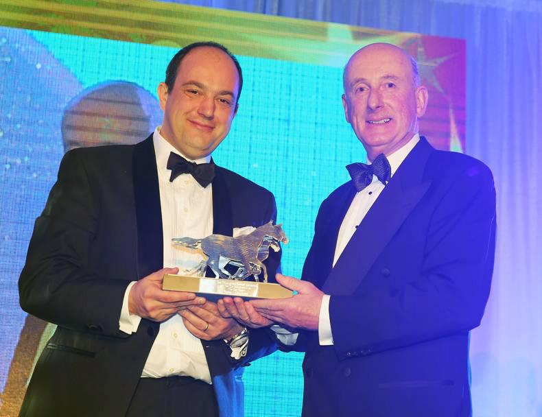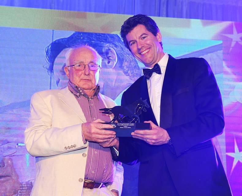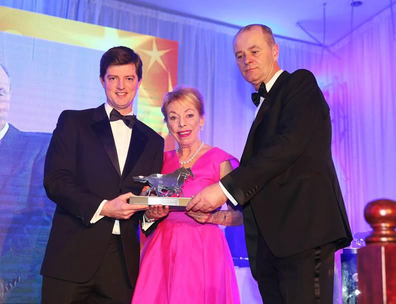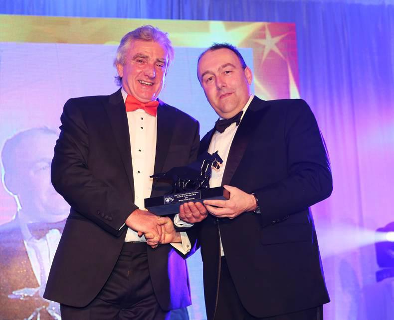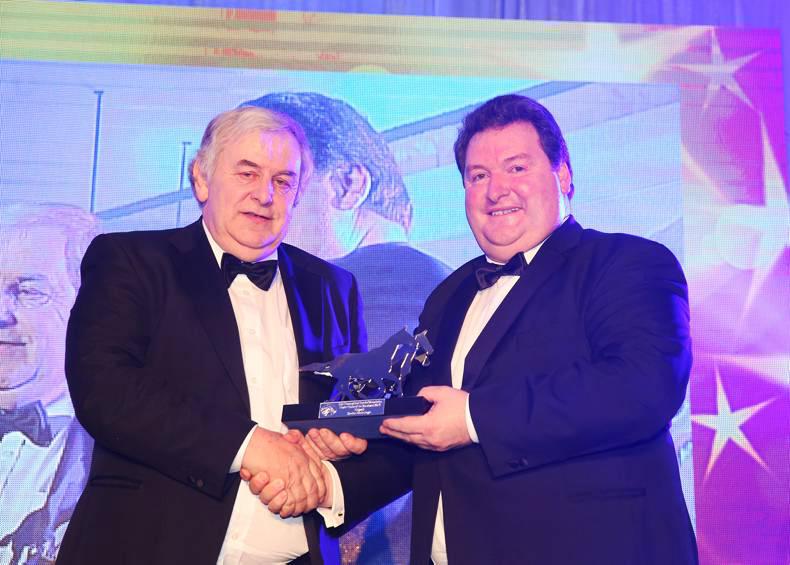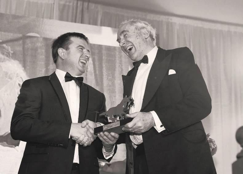 RORY MAHON RECEIVING SPECIAL RECOGNITION AWARD FROM DAVID O'LOUGHLIN, COOLMORE STUD