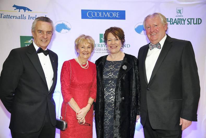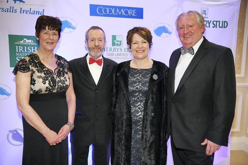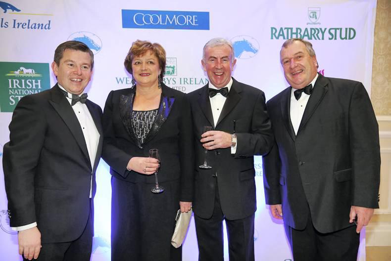 AWARD WINNERS, FRONT ROW: SABENA POWER, SPRINTER; ELEANOR HADDEN, STAYING HURDLER, STEPHEN COLLINS, HALLOF FAME, ON BEHALF OF SHEIKH HAMDAN AL MAKTOUM, DEREK ICETON, CHAIRMAN ITBA; META AND KEVIN CULLEN, SMALL BREEDER. L-R, BEHIND THESE: FREDDIE POWELL FOR MALCOM PARRISH, 3-Y-O COLT; MARIE AND PAUL MCCARTAN, 2-Y-O FILLY; EDMOND COLEMAN, CHASER; GERARD MCGRATH, HURDLER; JOHN O'CONNOR, 2-Y-O COLT; CHRISTY GRASSICK, 2-Y-O FILLY; PADDY DOYLE, NOVICE CHASER; RORY MAHON, SPECIAL RECOGNITION; NIALL RYA