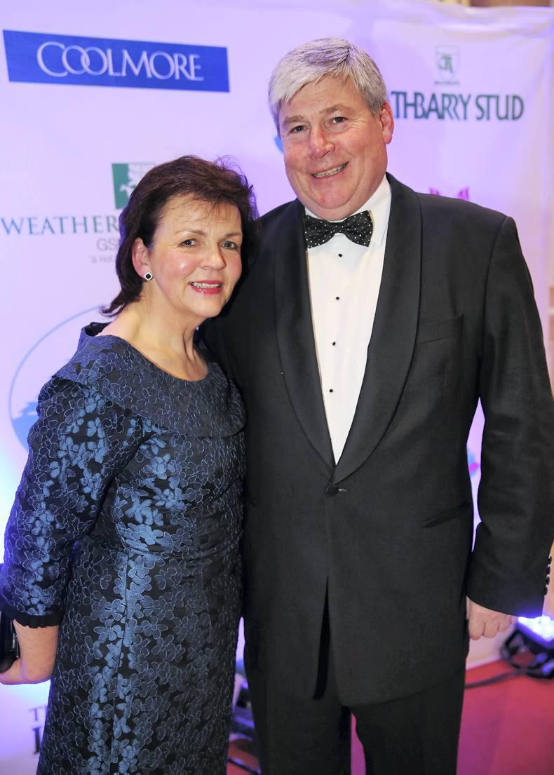 ITBA NATIONAL BREEDING & RACING AWARDS, HERITAGE GOLF & SPA RESORT, KILLENARD, CO.LAOIS. SAT 24 JANUARY 2015 PICTURE: CAROLINE NORRIS GERRY DUFFY, KILDANGAN STUD, PRESENTING LEADING SPRINTER AWARD TO SABENA POWER AND EDDIE LYNAM FOR SLADE POWER